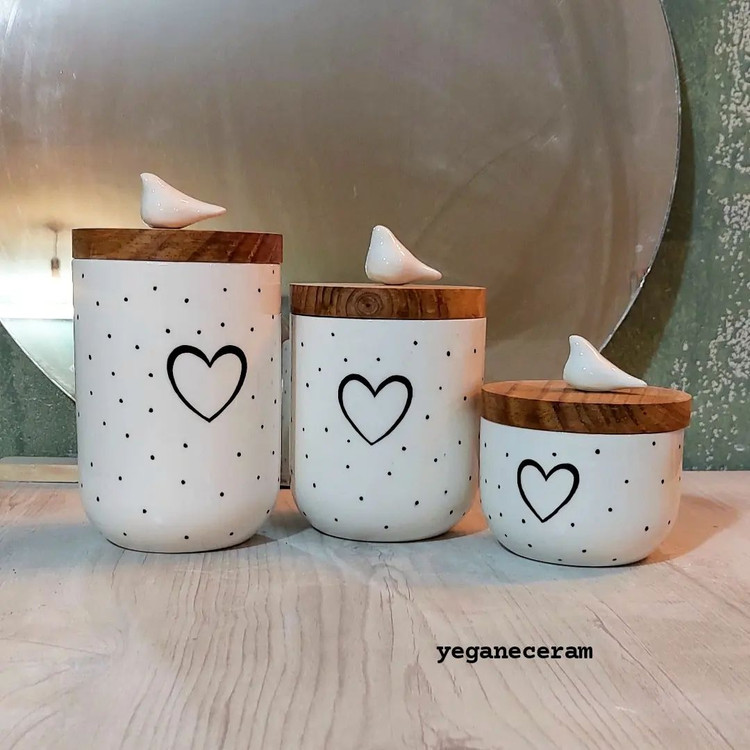 ست 3 تیکه پاسماوری و جا ادویه سرامیکی طرح قلب