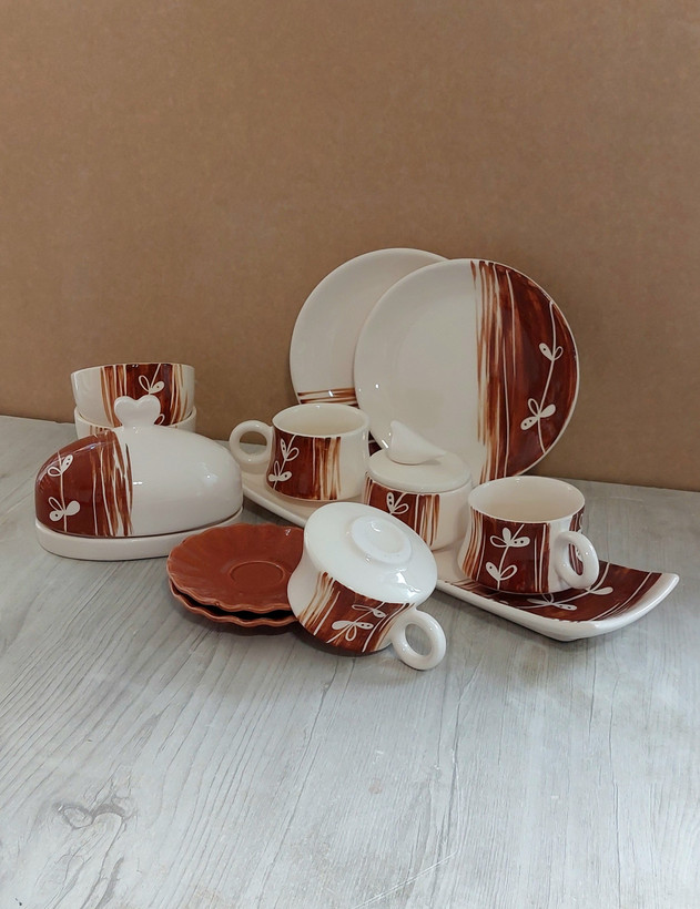 شامل: 4عدد فنجان ونعلبکی.1عدد سینی.2 عدد مربا خوری.1عدد کره خوری.1عدد قوری .1عدد قندان