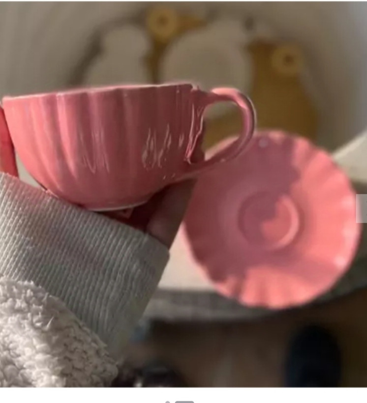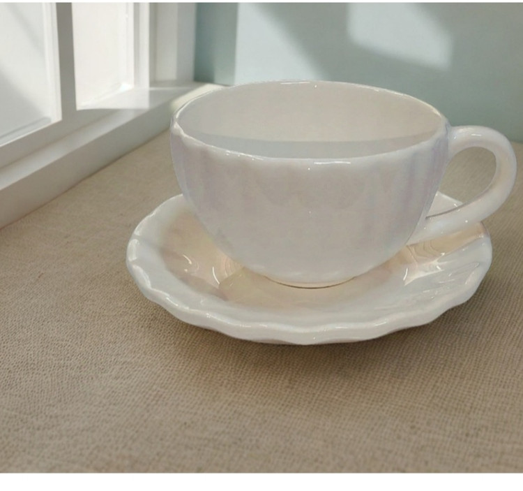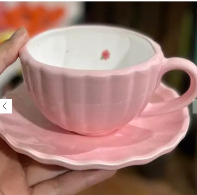 فنجان لته خوری شیار دار سرامیکی طرح میوه ای با نعلبکی