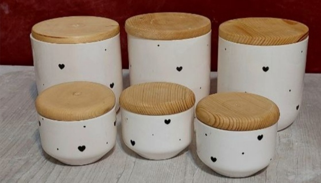 ست شش تیکه پاسماوری و جا ادویه سرامیکی طرح قلب ریز با درب چوبی و با قیمت مناسب ،که به صورت دست نقاشی شده و رنگ ها به هیچ عنوان از بین نمیرون