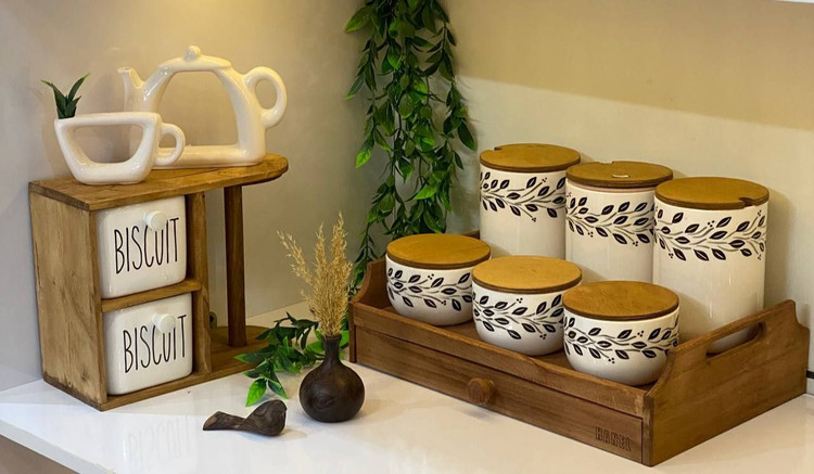 ست شش تیکه پاسماوری و جا ادویه سرامیکی طرح گل پیچک مشکی