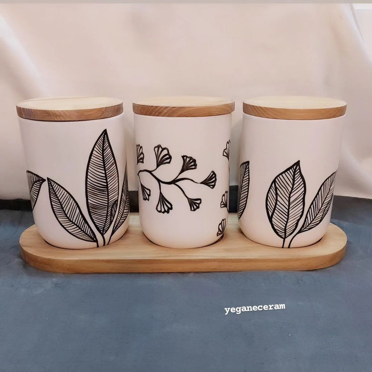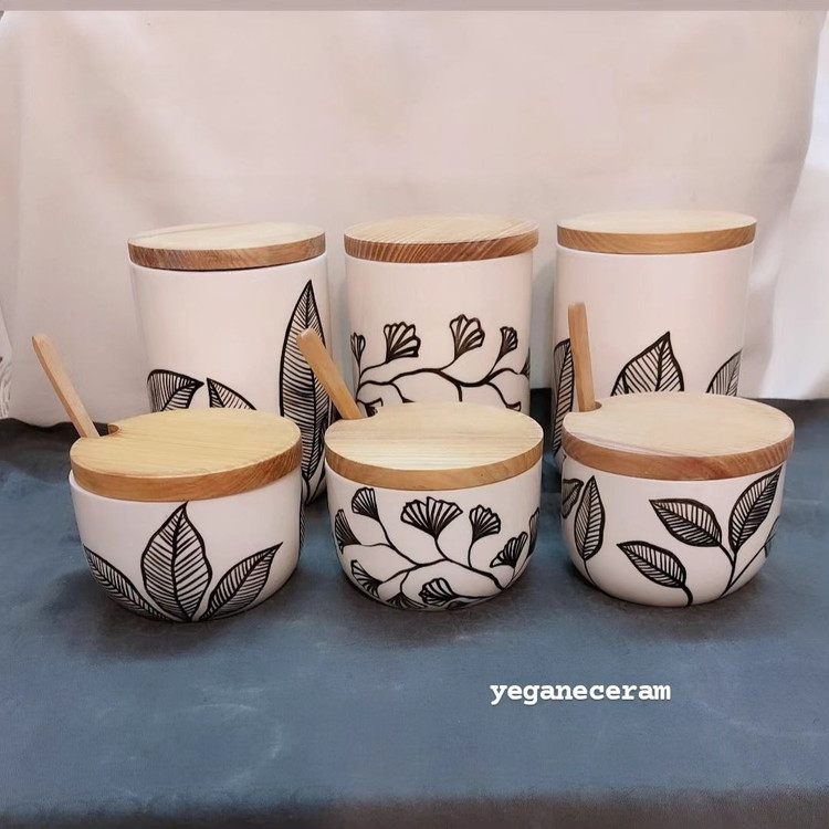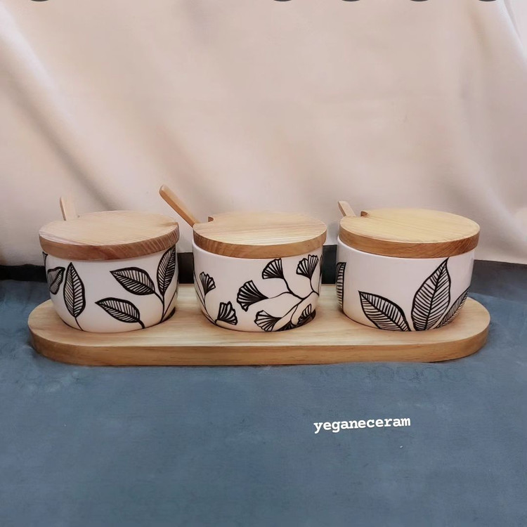 ست پاسماوری و جاادویه طرح برگ مشکی جنس سرامیک مصرفی و لعاب خورده دربها چوب کاج واشردار ارسال به با تیپاکس